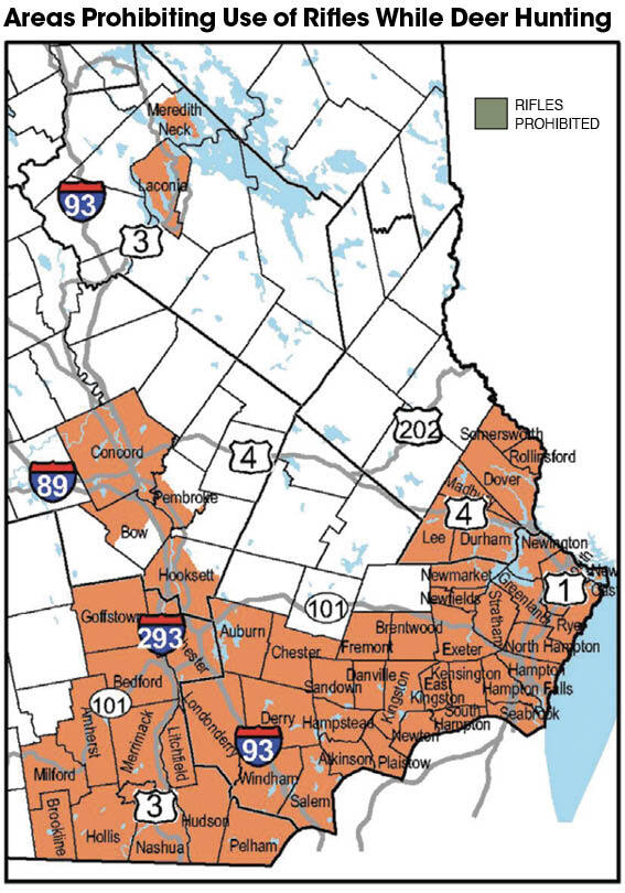 * Buckshot prohibited for taking deer in these towns (RSA 208:3-a,b,c).