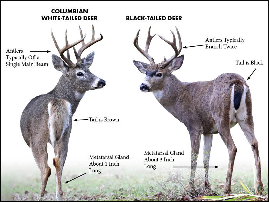For more tips on field identification of Columbian white-tailed deer vs. Columbian black-tailed deer, see our video at: myodfw.com/big-game-hunting/species/deer
